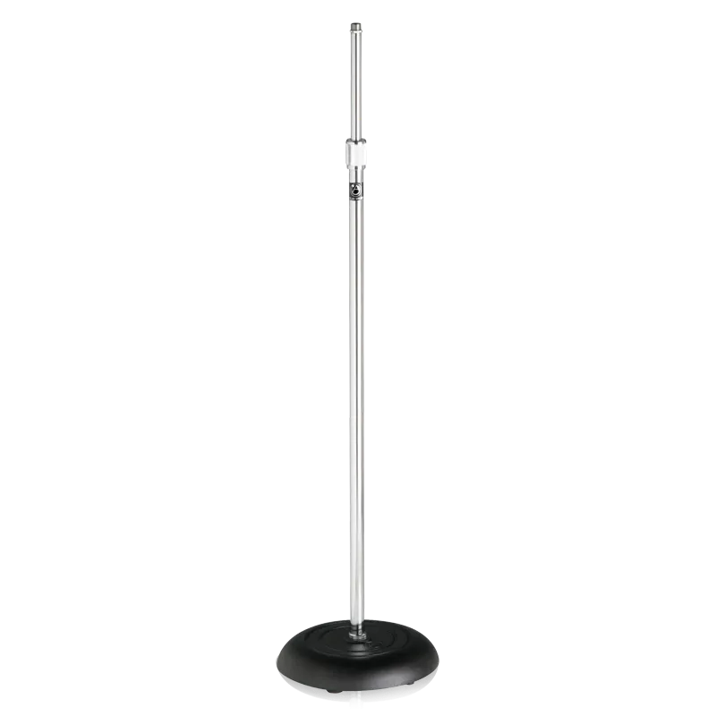 The AtlasIED MS-10C and MS-10CE are all-purpose professional microphone stands designed for durability, stability, and long-term performance in stage and studio environments. Each stand features a 10" diameter die-cast circular base with edge-concentrated weight distribution and rubber shock-absorbing pads to protect floors and reduce vibration.