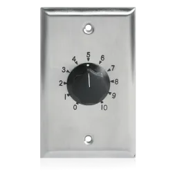 The AtlasIED E408-100 precision attenuator is specially designed for sound masking and sound reinforcement systems that require fine-tuned level control. Featuring a ten-position, non-shorting rotary switch with no stop, it provides precise attenuation in 1.5dB increments, allowing exact audio adjustments. Rated for 100 watts power handling, this attenuator supports both rack and plate mounting for versatile installation options.
