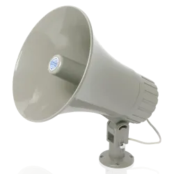The AtlasIED GA-30T is a 30-watt utility horn speaker designed for voice paging, music transmission, and intercom applications. Its double re-entrant horn construction maximizes output to penetrate ambient noise, delivering clear sound in challenging environments.