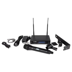 • Complete wireless microphone kit with receiver, transmitter, antennas, and cables