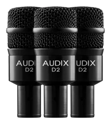 The Audix D2 Trio is everything you need for miking your toms, all in one convenient package. The tailored frequency response of the D2 drum microphone gives you all the punch, clarity, and warmth needed for percussion without being muddy or boomy. The proprietary VLMTM (Very Low Mass) capsule technology provides superior transient response and more accurately captures every detail of your music. The included DVICE mounts let you squeeze these microphones into tight places eliminating the need for bulky microphone stands.