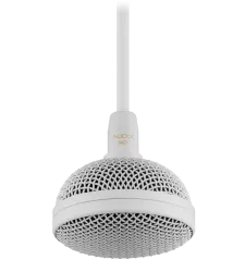 The M3 is an innovative, tri-element hanging microphone system designed for applications where aesthetics, sound quality, and ease of installation are critical. The M3 is an ideal audio capture solution for video conferencing, distance learning, courtroom activities, and surgical procedures. It can also be used for ambient room miking and surveillance. The M3 incorporates three phase coherent hypercardioid capsules with tailored frequency responses optimized for speech intelligibility. This is accomplished by minimizing frequencies caused by noise, vibration, paper shu ing, keyboard strokes, fans, and heating/air conditioning. Low noise preamp circuitry is employed for highest possible signal to noise and studio quality sound. A high-quality silicone jacketed microphone cable ensures a balanced, shielded signal and a very clean look. Electronics above the ceiling are housed within a plenum rated junction box and cable connections are made via an RJ45 connector embedded within a proprietary brass housing for an airtight seal. The M3 connects to the input of a mixer or dsp console via a breakout cable (provided). The breakout cable consists of a female RJ45 connector that terminates in either three terminal blocks or XLR connectors (optional). A variety of optional shielded CAT7 cable lengths (from plenum rated junction box to break out cable) are available. Installing the M3 requires drilling just one 5/8-inch hole in the ceiling, with no additional tools needed. The M3 mounting hardware easily adjusts the cable hanging height up to four feet from the ceiling surface without removing ceiling tiles. A wire safety cable provides additional seismic restraint.