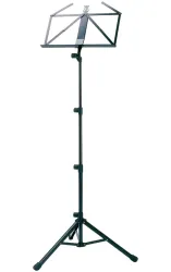 Sturdily designed, it is made of steel, black powder-coated. This three-piece folding music stand is equipped with beautifully designed, easy-to-use clamping elements. Its large music desk provides lots of space for your personal sheet music.