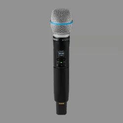 The Shure SLXD2+/B87A is a professional digital handheld wireless transmitter designed for use with Shure SLX-D+ wireless systems. Featuring the Beta® 87A supercardioid condenser microphone capsule, this transmitter provides detailed vocal reproduction, excellent feedback rejection, and dependable RF performance for live sound, corporate presentations, and houses of worship.
