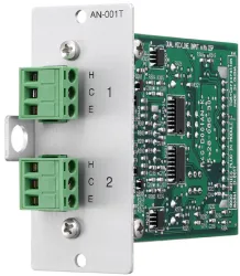 The TOA AN-001T is a 2-channel ambient noise detection module designed for use with TOA's 9000 Series mixer/amplifiers. It enhances audio system performance by automatically adjusting output volume in response to changes in environmental noise levels—ideal for paging and background music applications in dynamic sound environments like airports, shopping centers, schools, and transportation hubs.