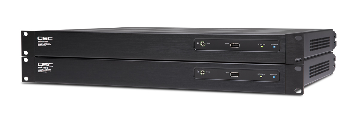 The QSC MP-M music and paging mixers are fixed architecture mixer/processors offering unprecedented capabilities combined with ease of configuration and operation. The products are intended for retail and hospitality applications in which high-quality audio from various sources is routed to multiple zones. Live mixing functions are also supported for applications requiring reinforcement of entertainment, presentations or conferences.
